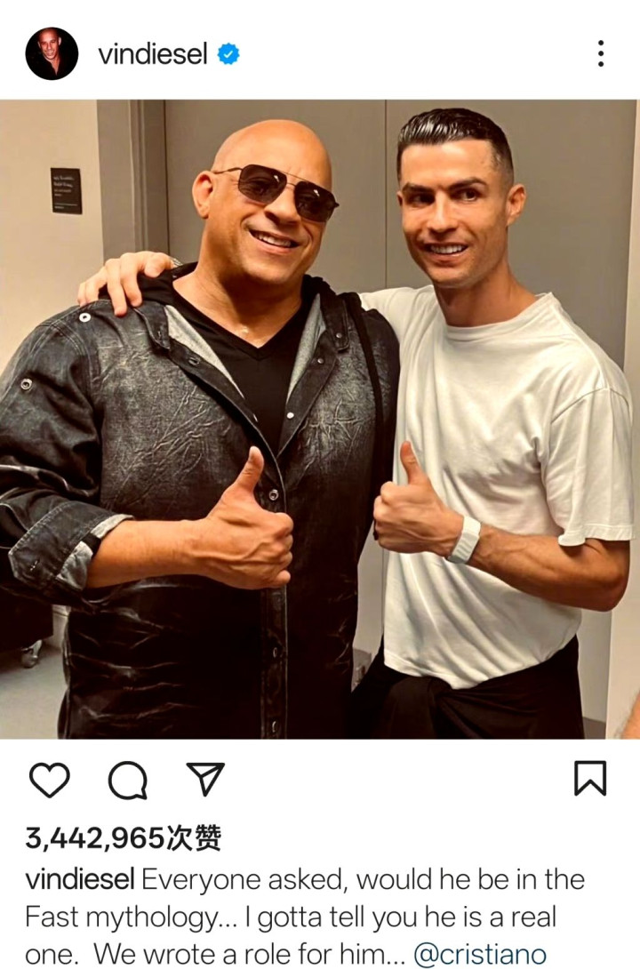 如果真能实现,C罗就是《速激》带设备进组的第一人了。