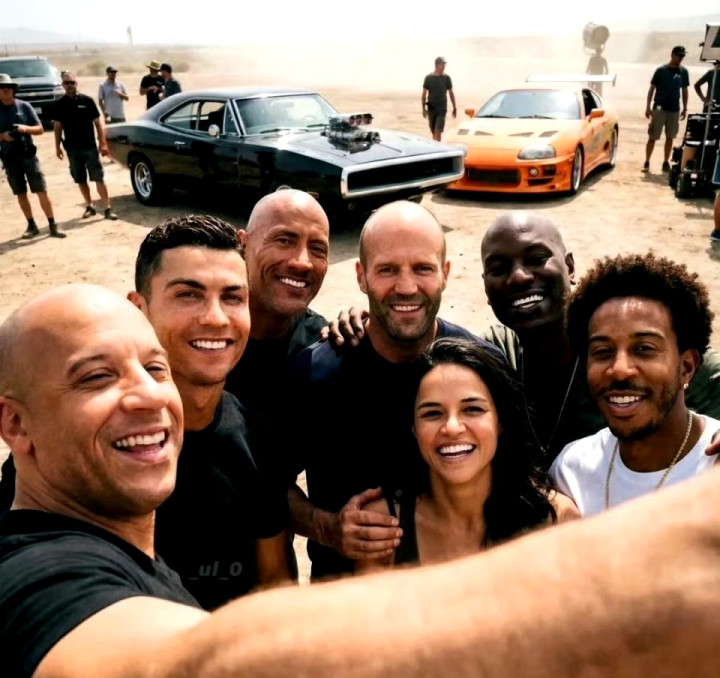 除了范·迪塞尔本人亲自印证过,罗曼的扮演者泰瑞斯·吉布森,也曾在社交平台上发布过一张AI合照。
