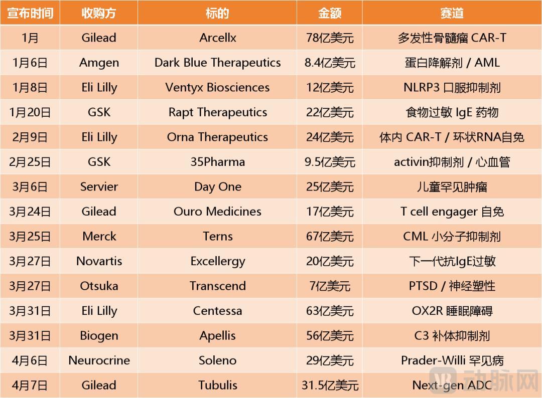 此番MNC收购爆发的3月底、4月初,正值JPM大会结束,AACR大会和ASCO大会预热的关键时期。在过去两年的3月至4月间,MNC都曾出现过收购小高潮。