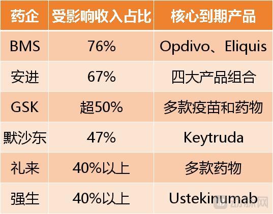 部分受专利悬崖影响的MNC和药物数据来源:公开信息整理